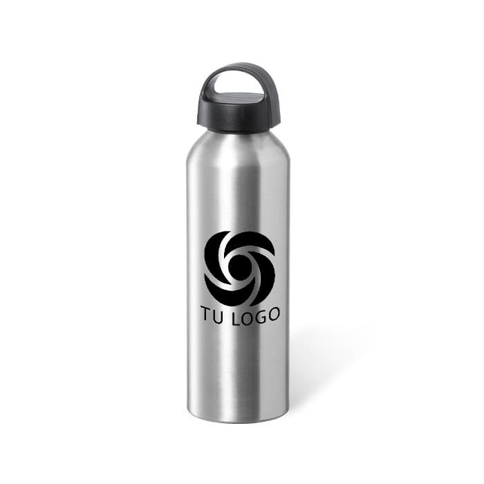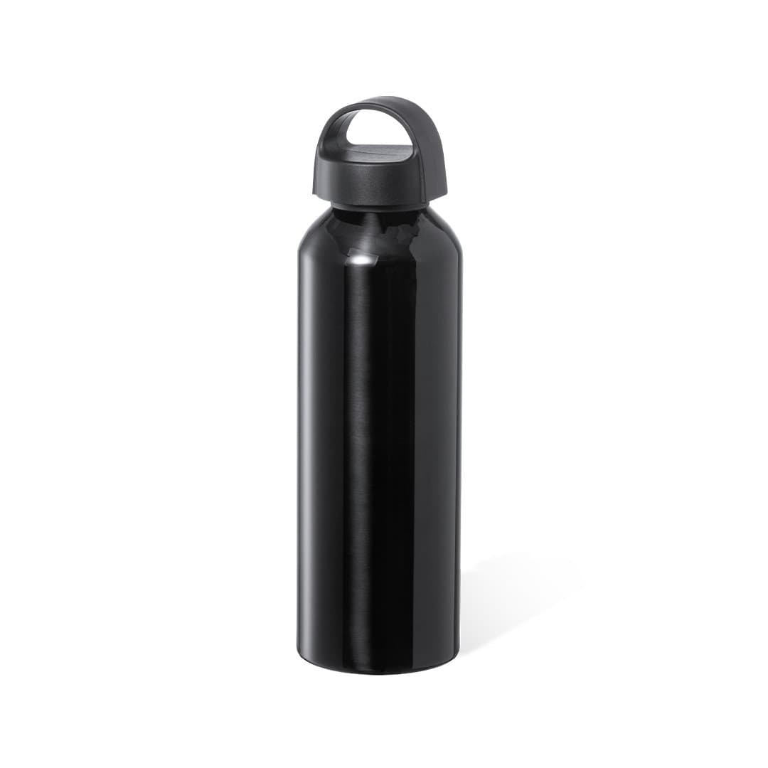 Bidón de 800 ml de capacidad, fabricado en aluminio de acabado brillo. Tapón en negro a rosca y con asa integrada, libre de BPA. Disponible en variada gama de colores y presentado en caja individual de diseño kraft.