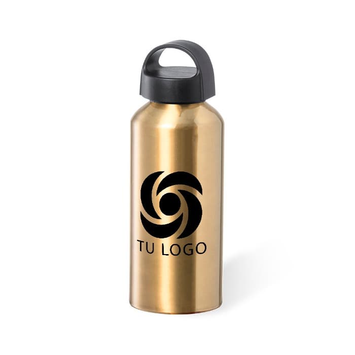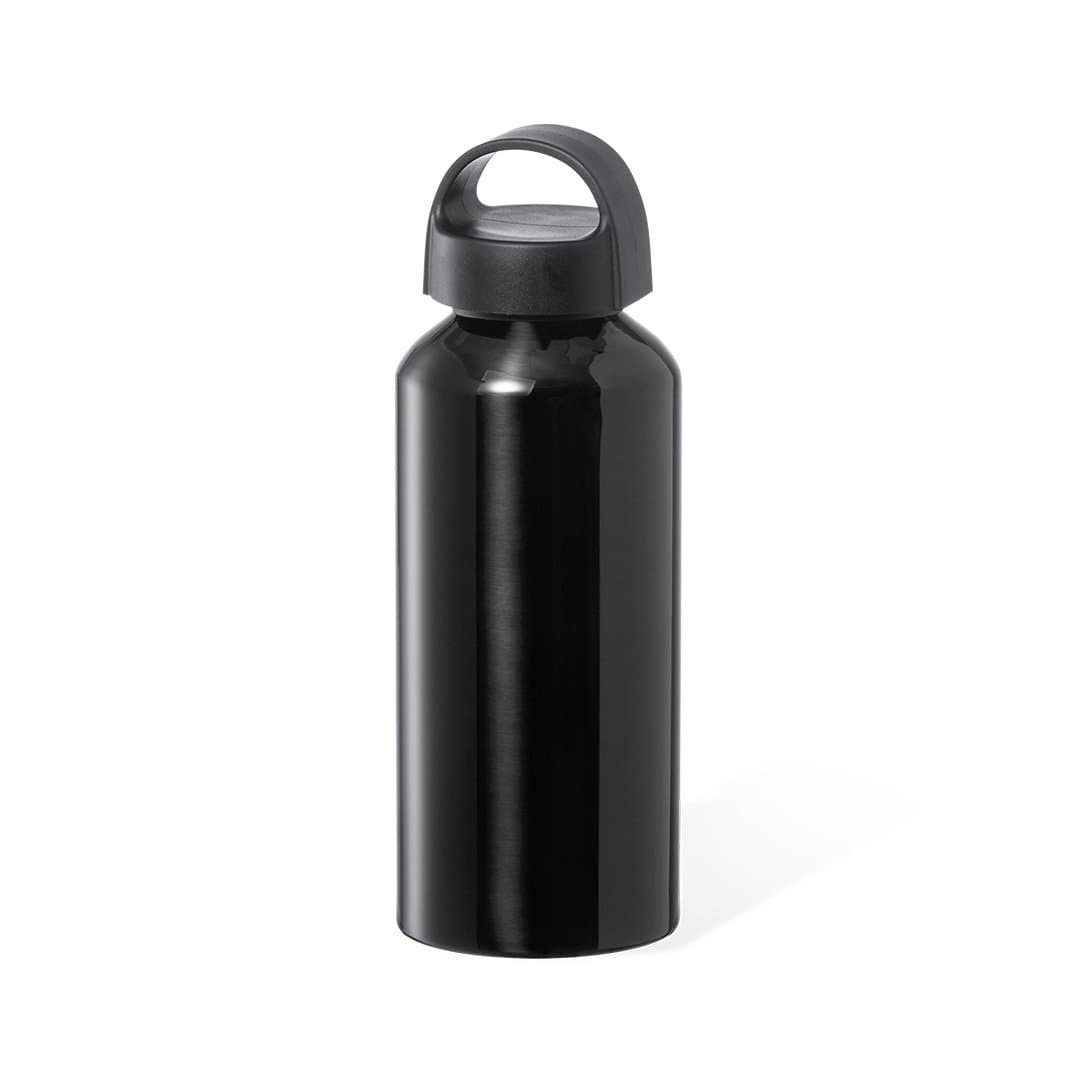 Bidón de 500 ml de capacidad, fabricado en aluminio de acabado brillo. Tapón en negro a rosca y con asa integrada, libre de BPA. Disponible en variada gama de colores y presentado en caja individual de diseño kraft.
