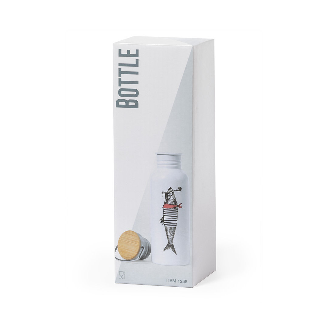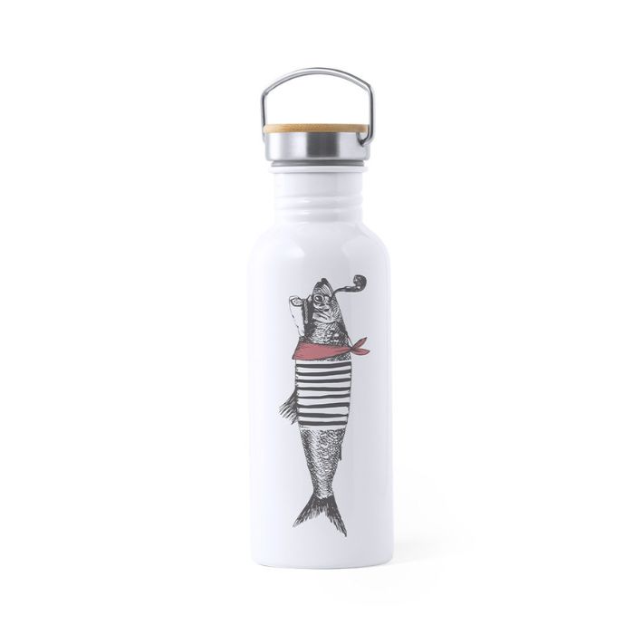 Bidón en acero inox especialmente diseñado para marcaje en sublimación. De estilo retro y 750ml de capacidad. Tapón de seguridad a rosca en acero inox, con detalle en bambú y asa de transporte vintage. Presentado en atractiva caja de diseño.