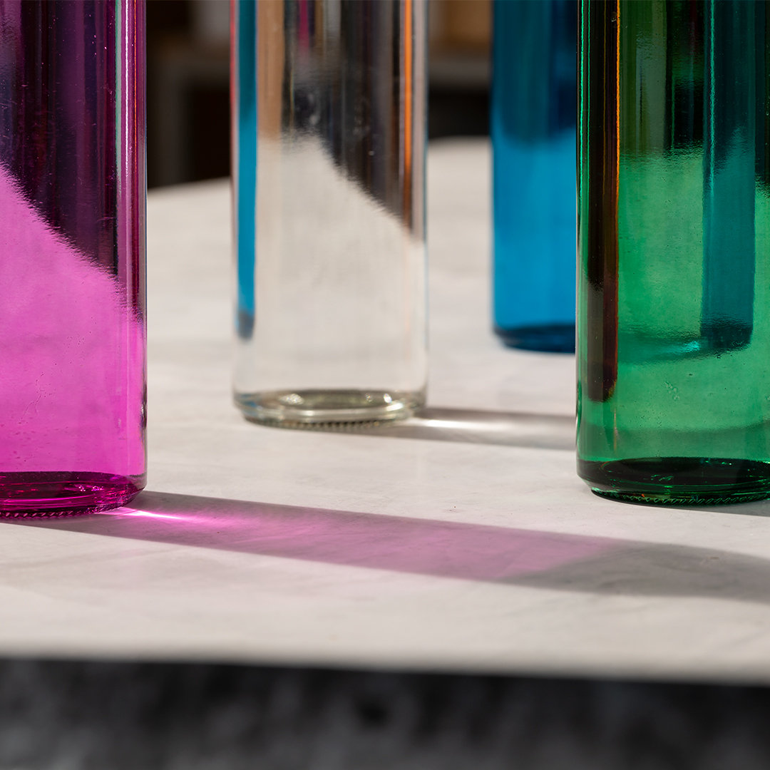 Bidón de cristal en alta calidad, de 500ml de capacidad, con cuerpo de acabado transparente en material libre de BPA y tapón a rosca en acero inox. Disponible en variada gama de colores. Presentado en atractiva caja de diseño.