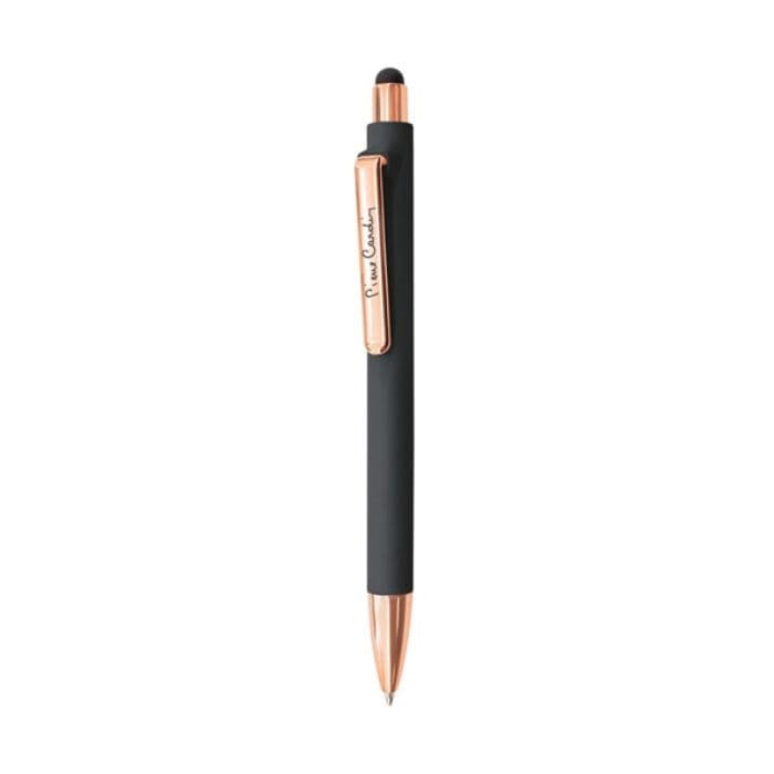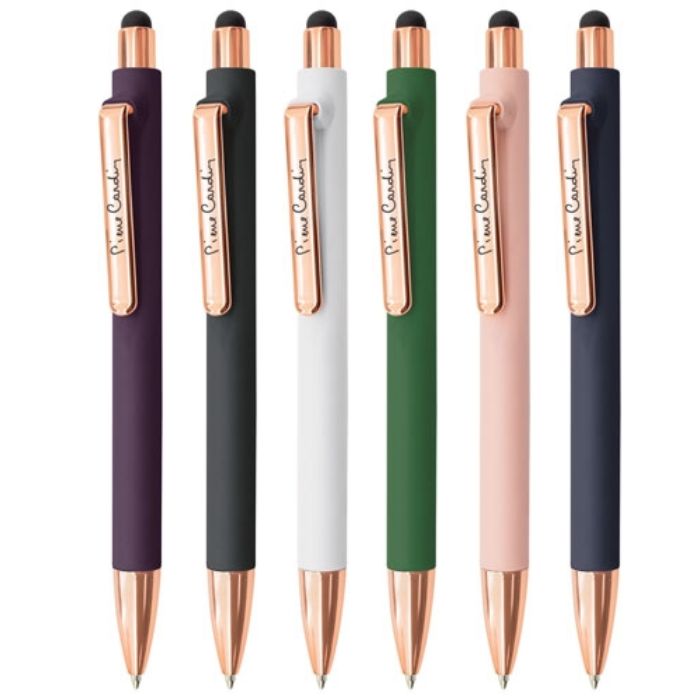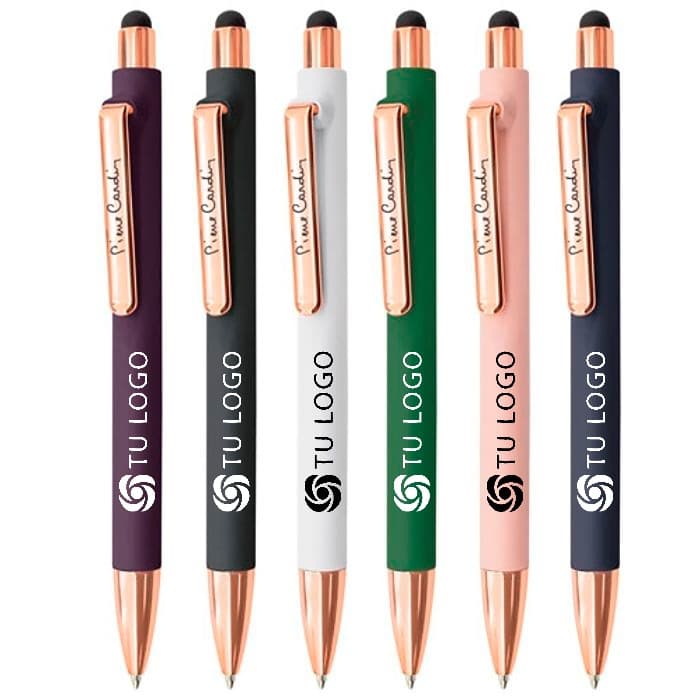 Cuerpo con textura soft effect. Con este bolígrafo, tendrás un regalo corporativo de tacto suave, donde podrás grabar tu marca, que acompañará el grabado de Pierre Cardin en el clip, que viene en cada uno de los bolígrafos.