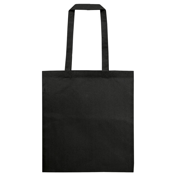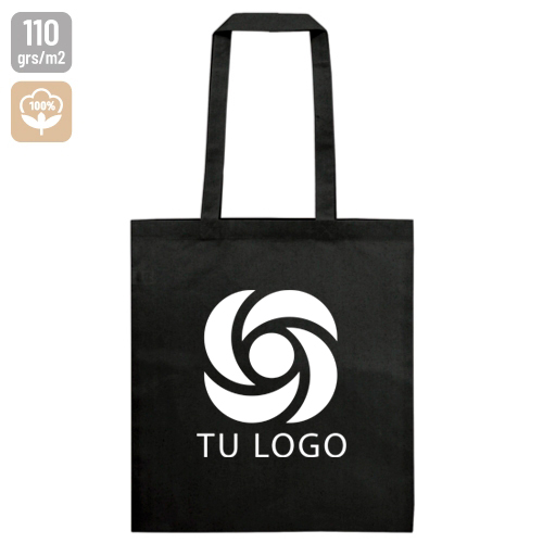 Bolsa de algodón en color negro de 110g/m2 con asas largas de 72 cm. Medidas de la bolsa: 38×42 cm.