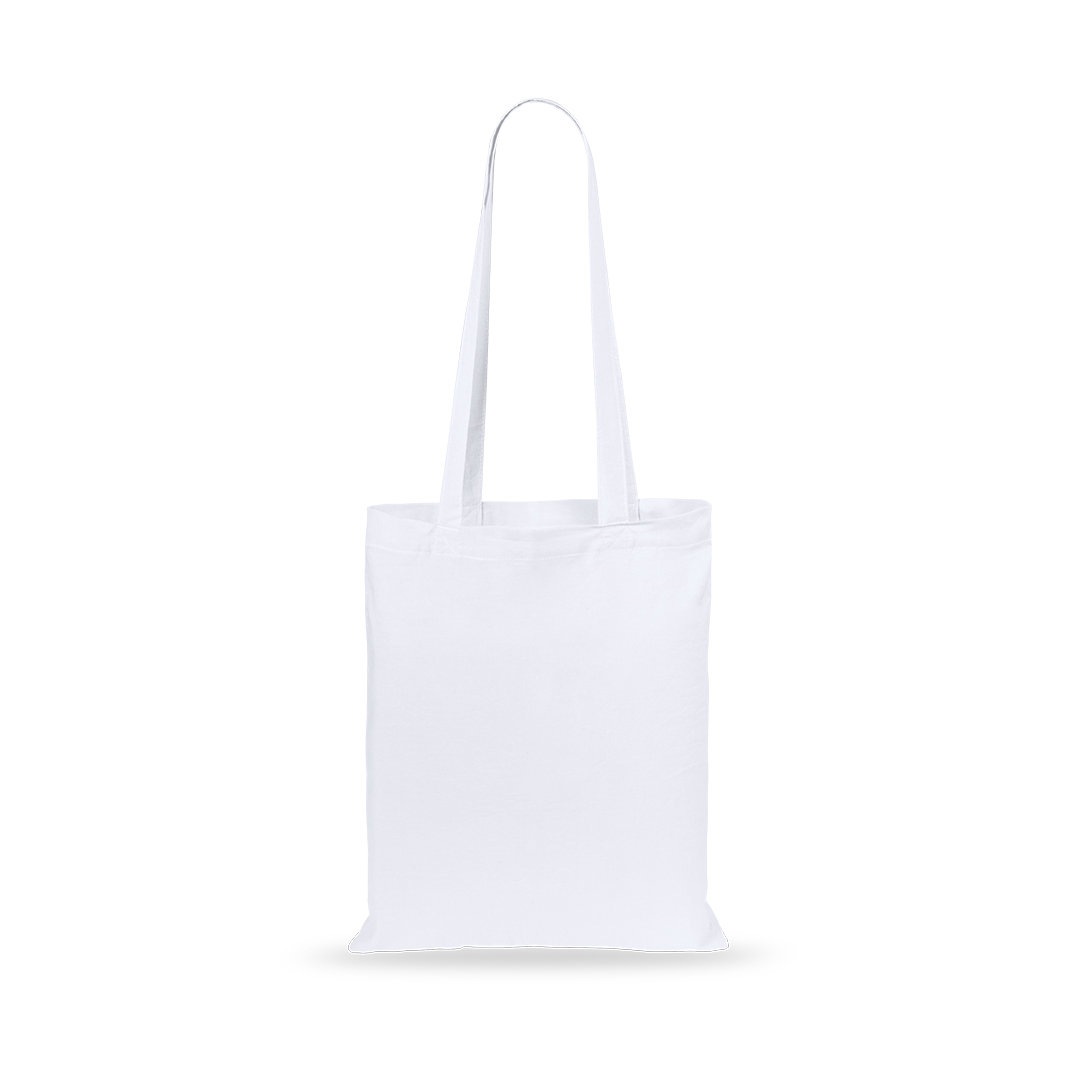 Bolsa de 140 g/m² en algodón natural, disponible en una amplia gama de colores. Cuenta con asas largas reforzadas (2 × 72 cm), lo que la hace cómoda de llevar al hombro. Resistente y compacta, soporta hasta 10 kg de peso. Una opción sostenible y versátil para eventos, ferias o promociones corporativas.