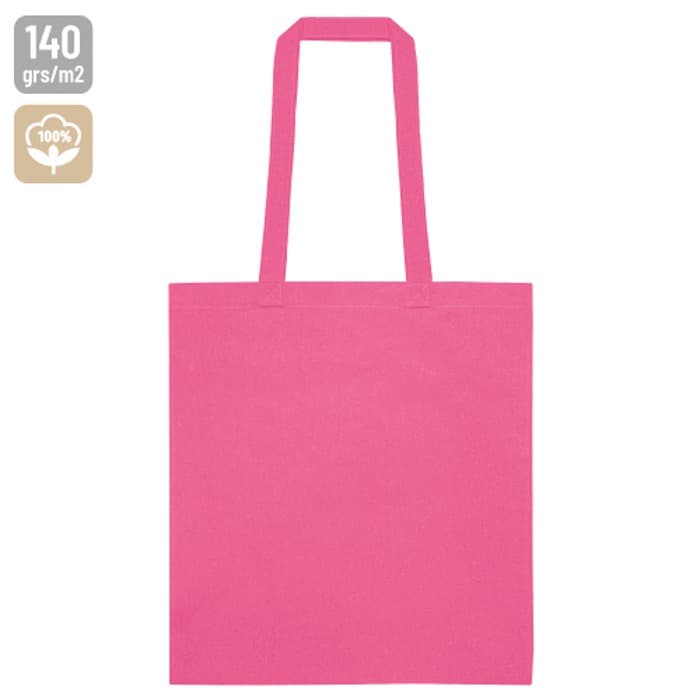 Bolsa de 140 g/m2 en algodón. Disponible en una variada gama de colores, con asas largas reforzadas. Resistencia de hasta 10kg de peso.