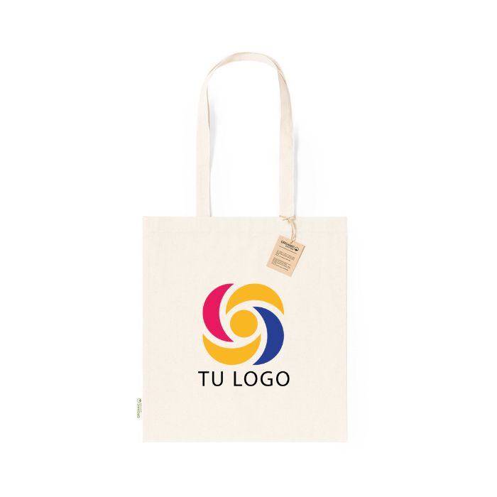 Bolsa fabricada en material 100% algodón orgánico de 140g/m2 y en tono natural. Con certificación GOTS (Global Organic Textile Standard, ó Norma Mundial de Textiles Orgánicos) que garantiza que los tejidos están hechos de fibras orgánicas.