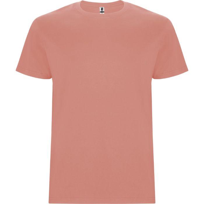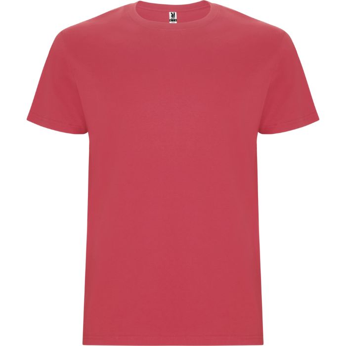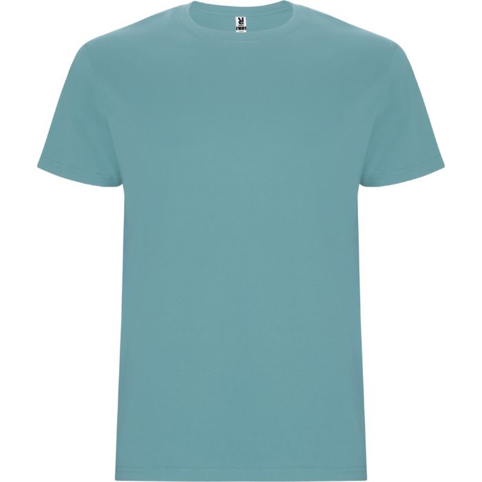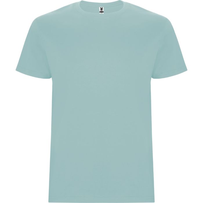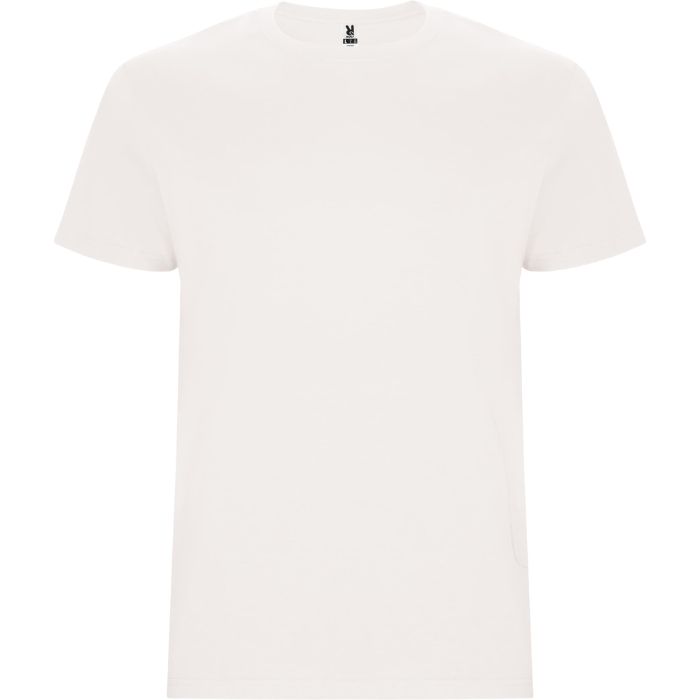 Camiseta tubular de manga corta. Cuello redondo con elastano. Costuras laterales en tallas de niño.