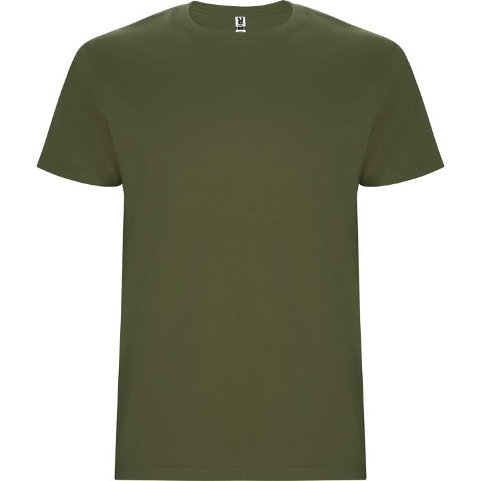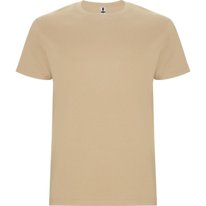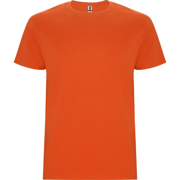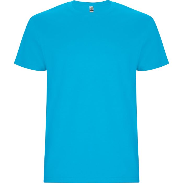 Camiseta tubular de manga corta. Cuello redondo con elastano. Costuras laterales en tallas de niño.