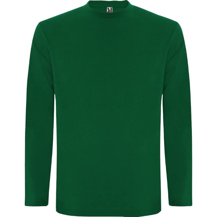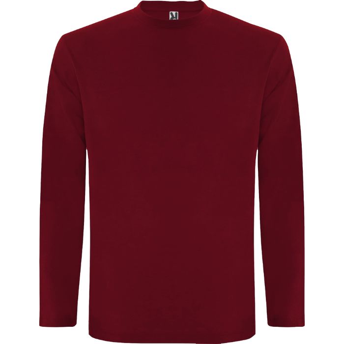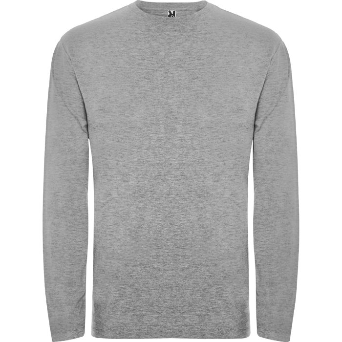 Camiseta de manga larga, tejido tubular y cuello redondo de 4 capas. Cubrecosturas de refuerzo en cuello y hombro. Sin puños.