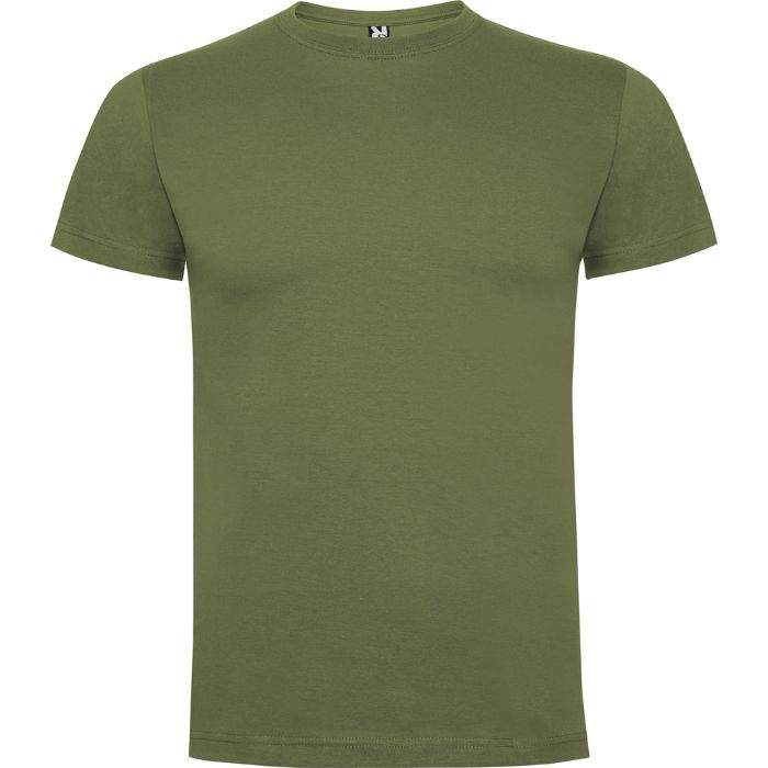 Camiseta de manga corta. Cuello redondo de 4 capas en canalé 1×1 con cubrecosturas de hombro a hombro. Costuras laterales.