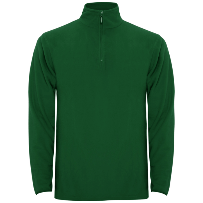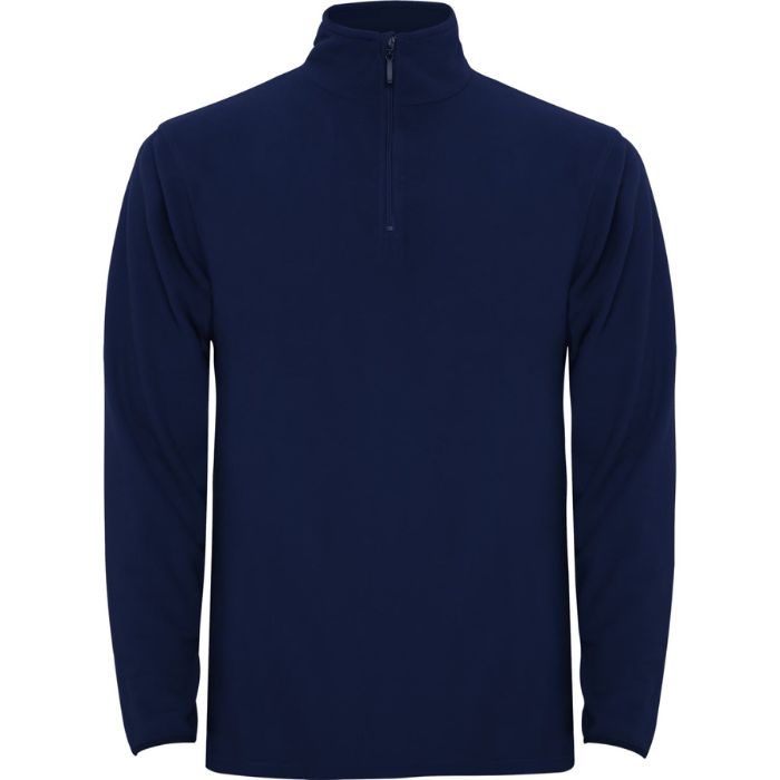 Chaqueta polar con media cremallera en el cuello y protector de barbilla. Puños con ribete elástico a tono.