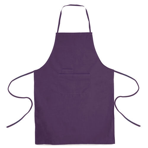Delantal con bolsillo frontal y cintas ajustables. 35% algodón y 65% poliéster. En variada gama de colores. De corte por debajo de la rodilla.