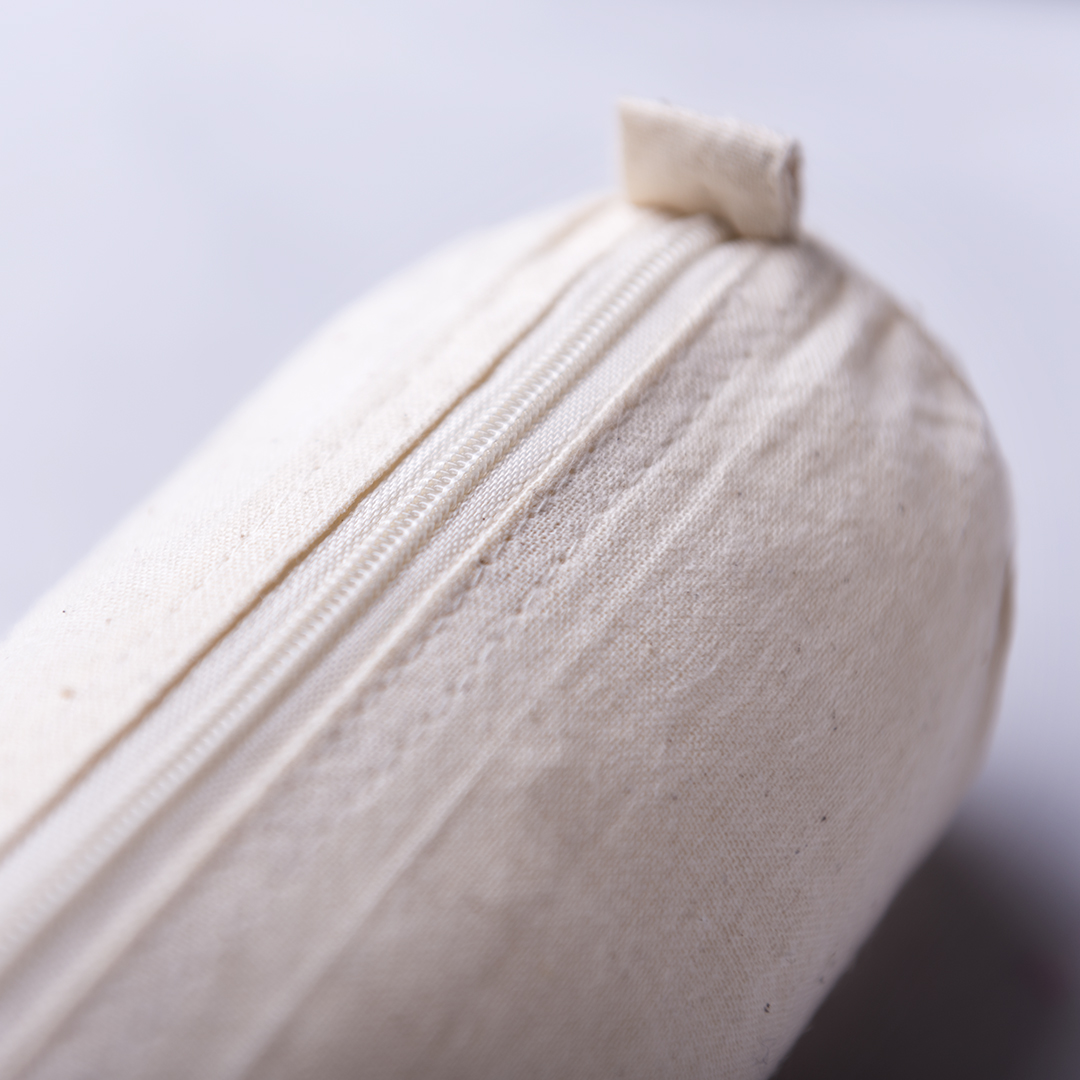 Estuche de línea nature en material 100% algodón crudo. Con clásico diseño cilíndrico, cremallera a juego y prácticas asas para fácil apertura.