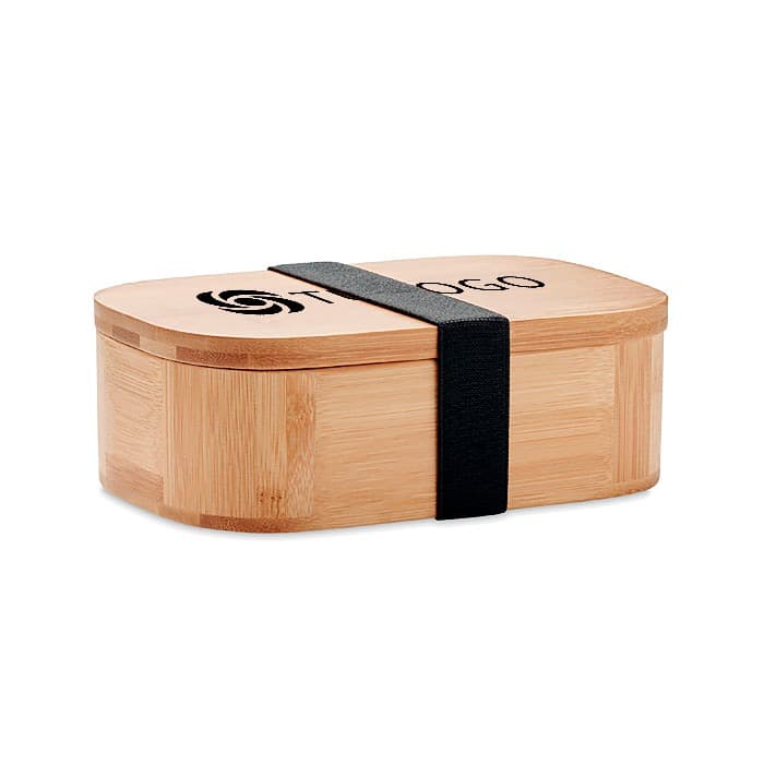 Fiambrera de bambú con separador extraíble y banda elástica de nylon. Sólo para alimentos secos. Capacidad: 650 ml.