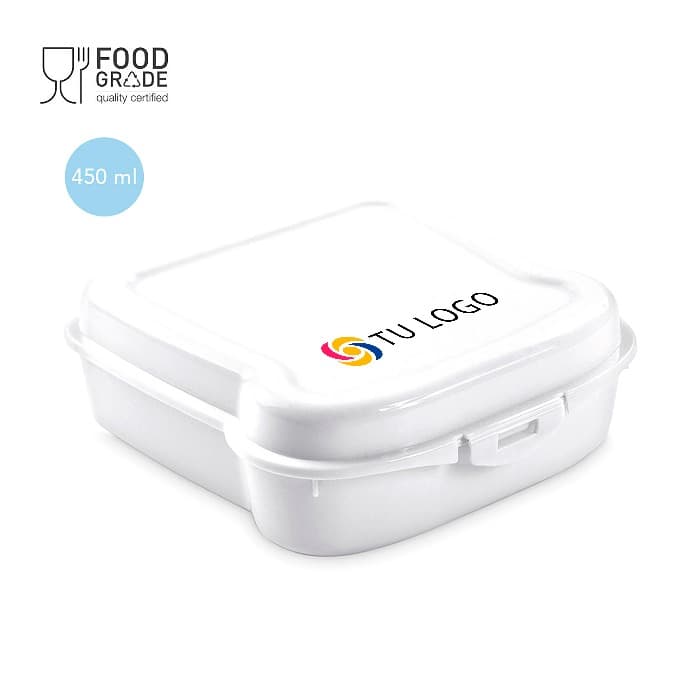 Fiambrera para sandwich de 450ml de capacidad en variada gama de vivos colores. Con cierre de seguridad.
