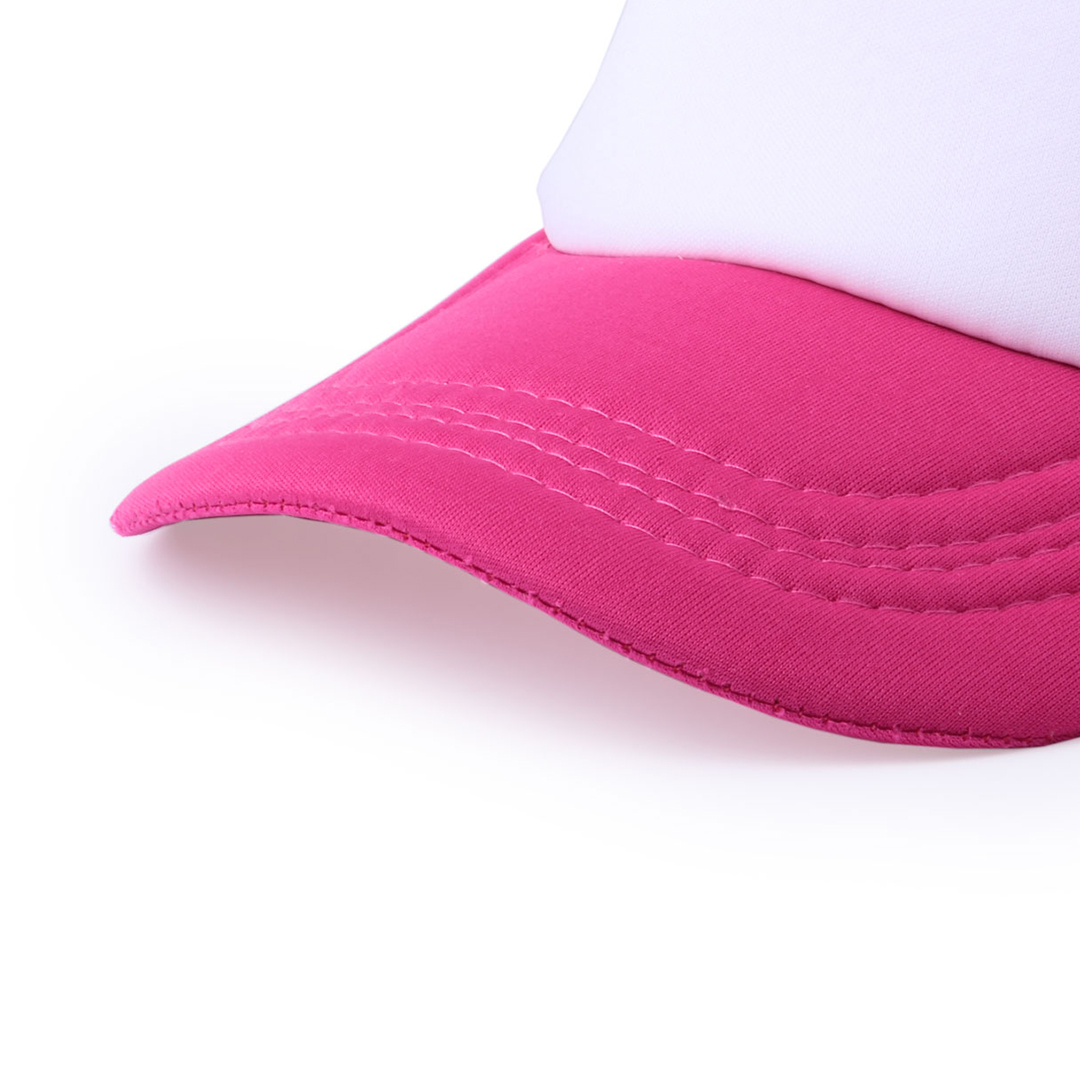 Gorra tipo trucker de 5 paneles en material 100% poliéster de suave acabado. En variada gama de vivos colores, con panel frontal en color blanco y cierre ajustable de plástico.