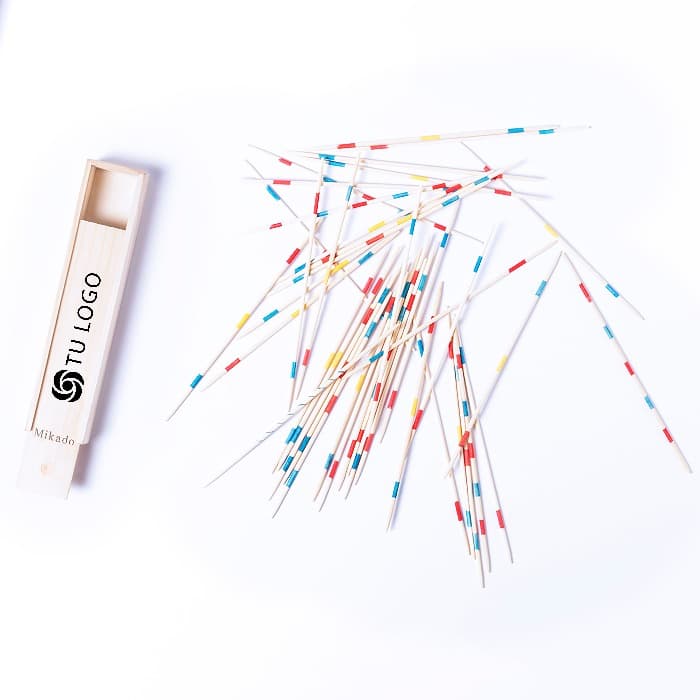 Clásico juego de habilidad mikado con 41 palitos de madera. Presentado en caja de madera con tapadera deslizante.