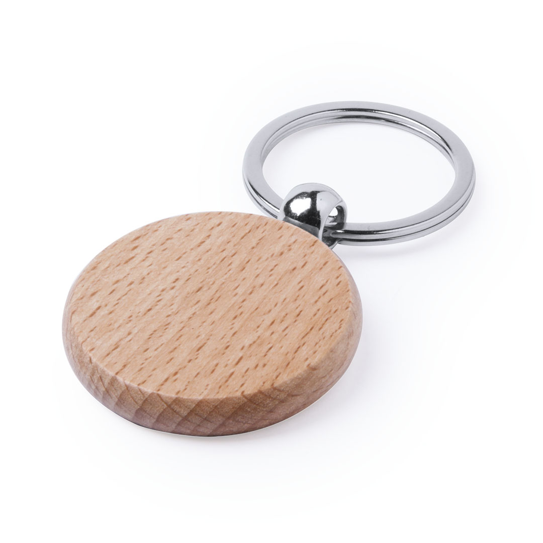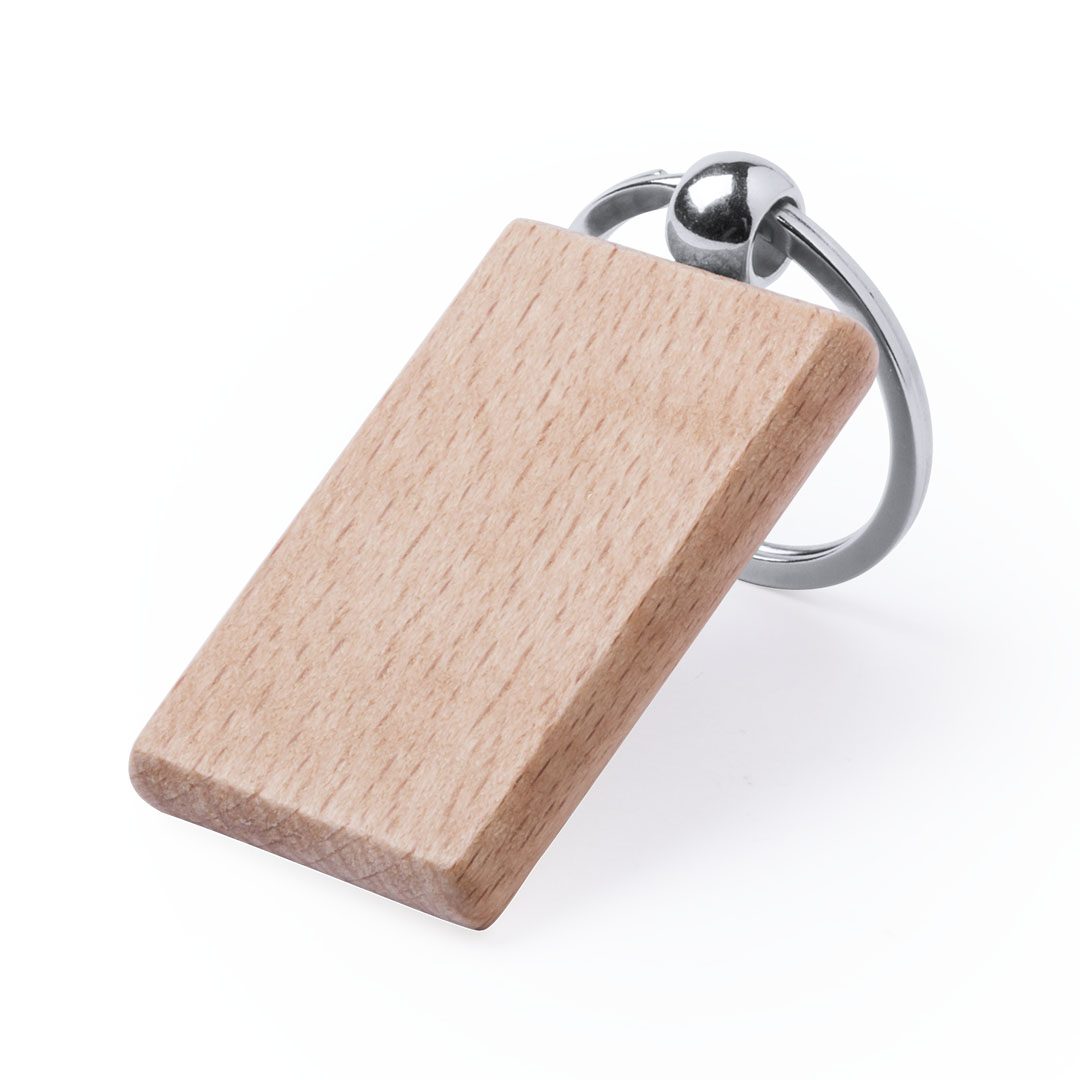 Elegante llavero de línea nature fabricado en madera natural de haya. Con amplia superficie de marcaje y disponible en diseños rectangular y redondo.