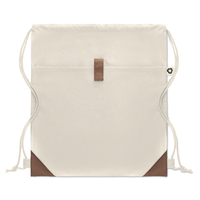 Mochila de cuerdas de algodón reciclado de 220 gr/m². Diseño con bolsillo exterior. Disponible en diferentes colores.