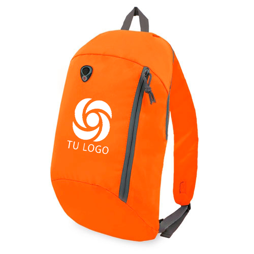 Mochila de poliéster en amplia gama de colores. Práctico bolsillo delantero y salida para auriculares. Gran comodidad y ligereza.
