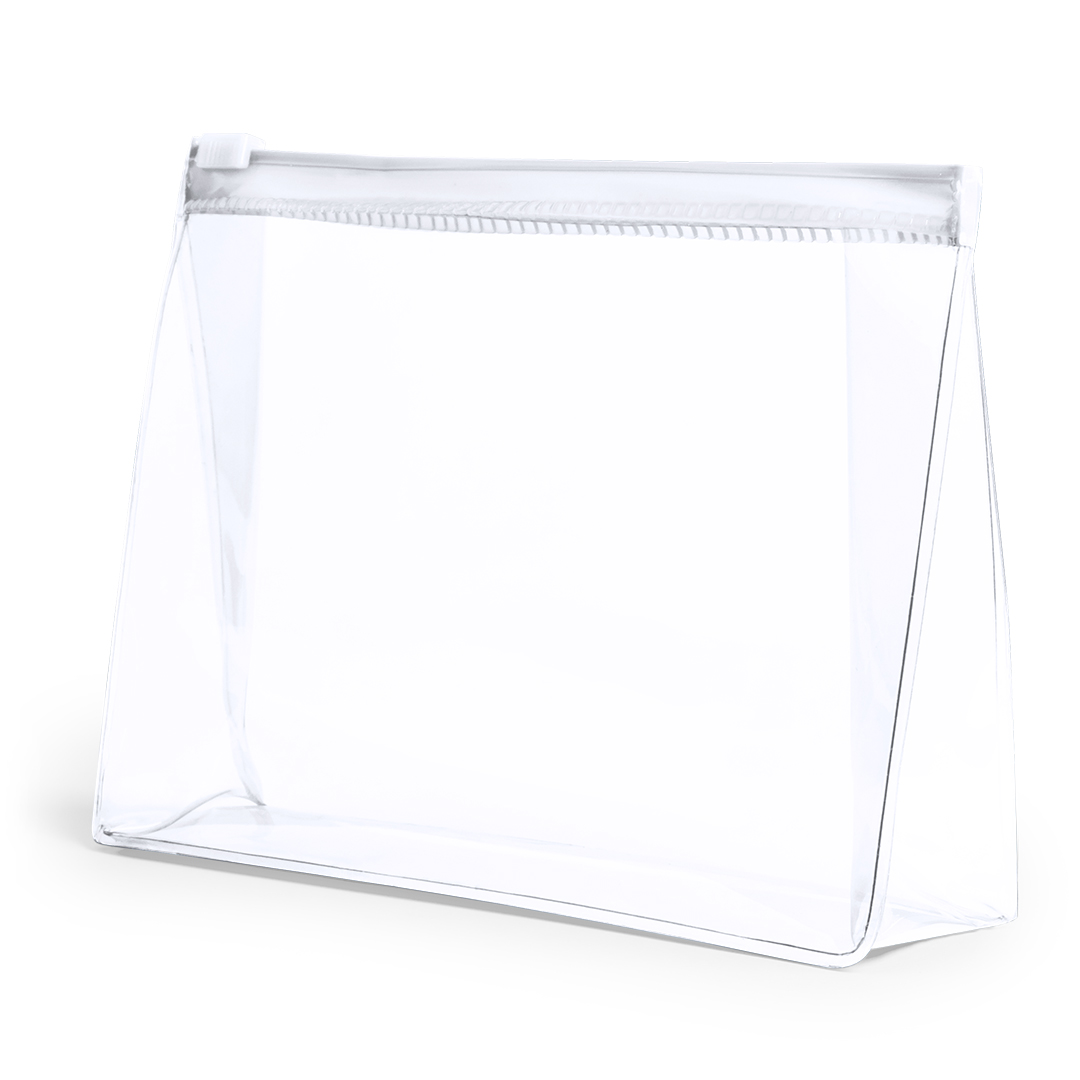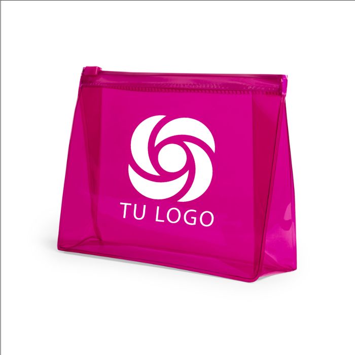 Neceser publicitario multiusos en resistente PVC transparente de variada gama en vivos colores. Con cierre hermético a juego.