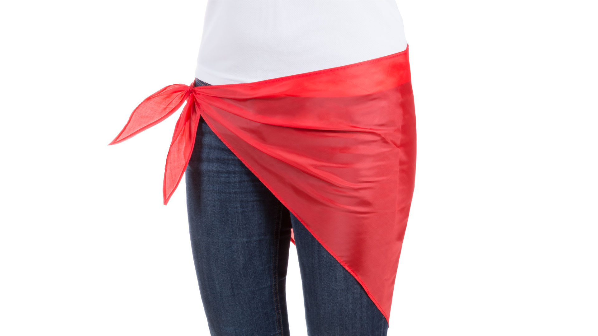 Pañoleta fajín de tamaño extra grande en suave poliéster y variada gama de vivos colores. Con pespuntes de refuerzo en laterales.