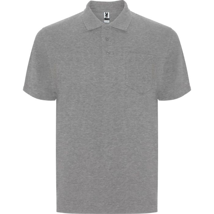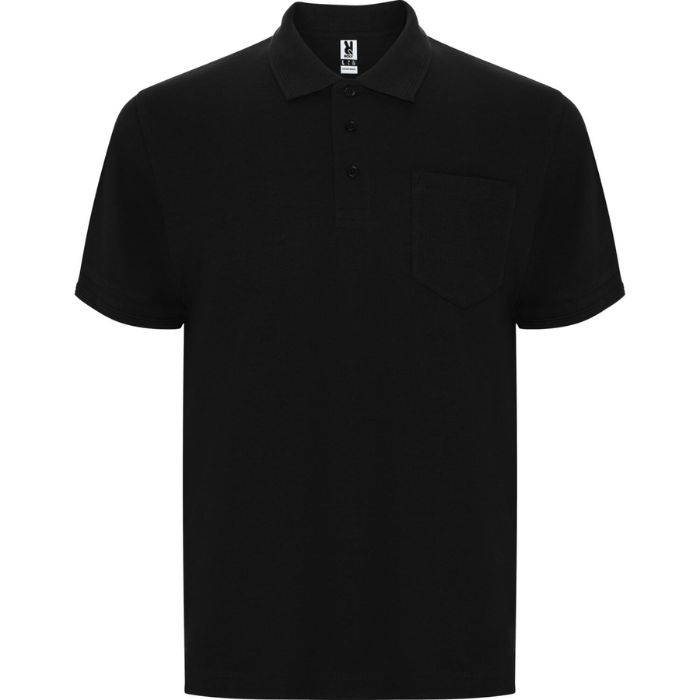 Polo de manga corta con bolsillo en pecho izquierdo. Cuello y ribete de manga en canalé 1×1 con detalle en relieve. Tapeta con 3 botones. Cubrecosturas reforzado en cuello.