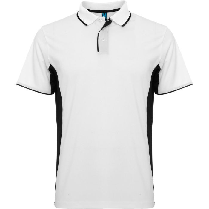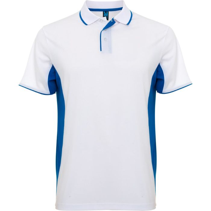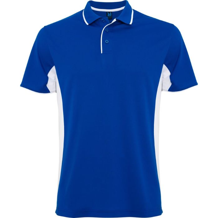 Polo técnico en manga corta, especial para deporte. Combinado a dos colores. Cuello con abotonadura, cubrecosturas y tapeta en contraste de color. Tejido transpirable fácil lavado y secado.