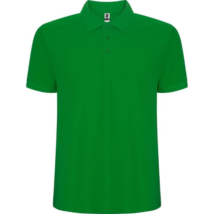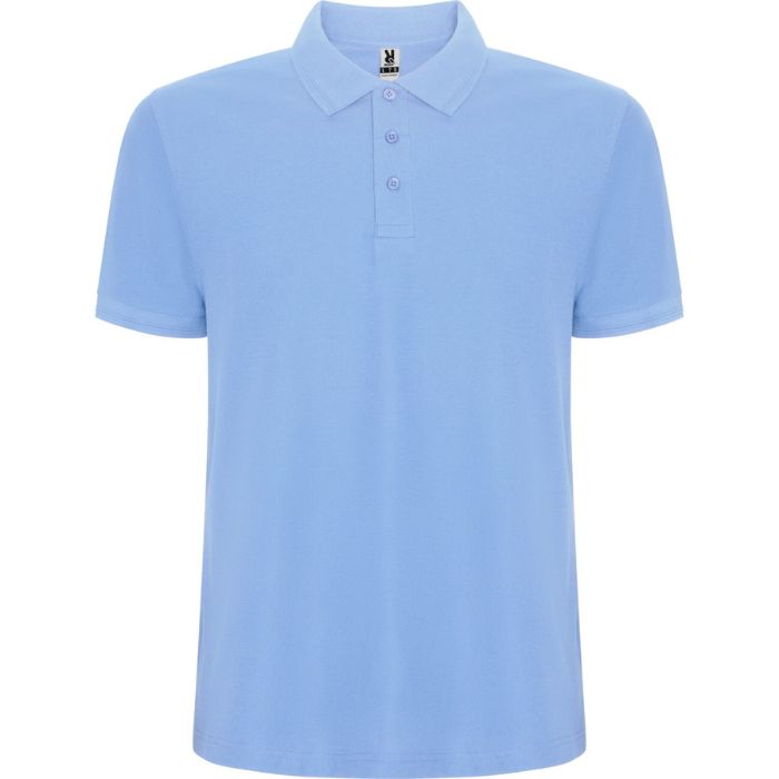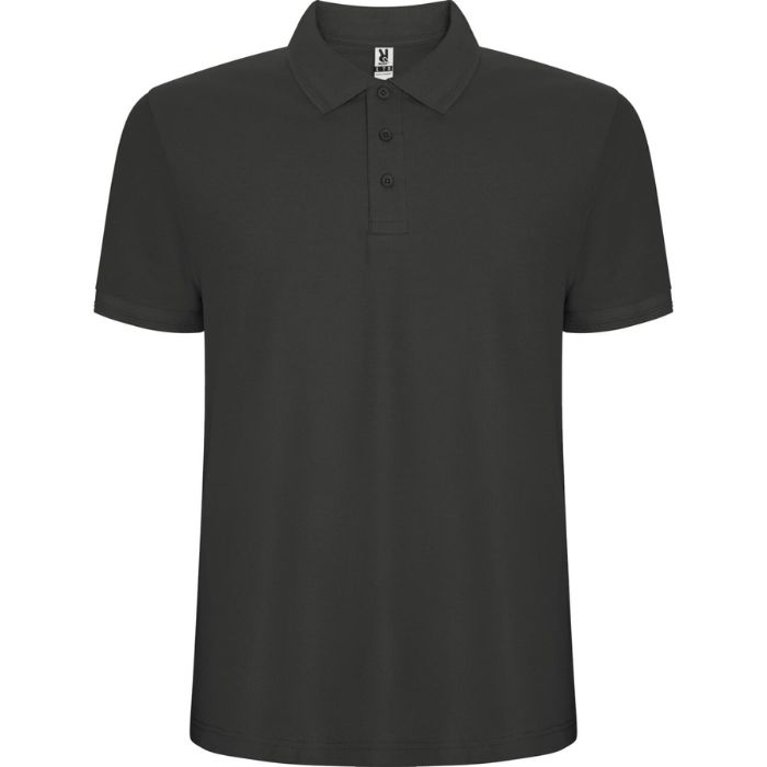 Polo de manga corta. Cuello y ribete de mangas en canalé 1×1 con detalle en relieve. Tapeta con 3 botones. Cubrecosturas reforzado en cuello. Aperturas laterales y bolsillo opcional.