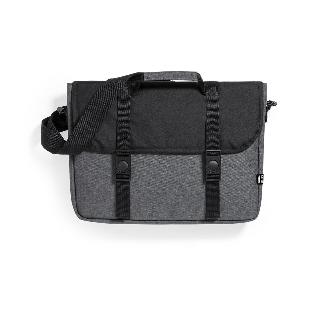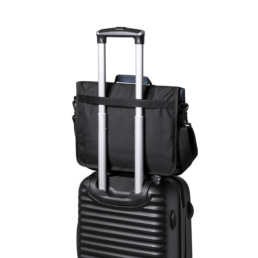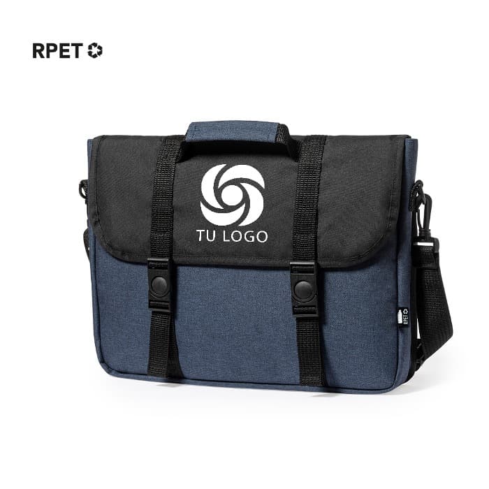 Portadocumentos de línea nature y en resistente poliéster 600D RPET reciclado y libre de PVC, fruto de la combinación del proceso de reciclaje de materiales plásticos junto con la técnica milenaria de fabricación del fieltro, dando como resultado un material de eco-tendencia de origen reciclado. Con acolchado y bolsillo principal con tiras de cierre de hebilla. bolsillo interior de cierre de cremallera y cinta bandolera ajustable para hombro. Con asa de transporte reforzada y accesorio en parte posterior para ajuste en barra de trollley. Resistencia hasta 7kg, con distintivo RPET en etiqueta exterior.