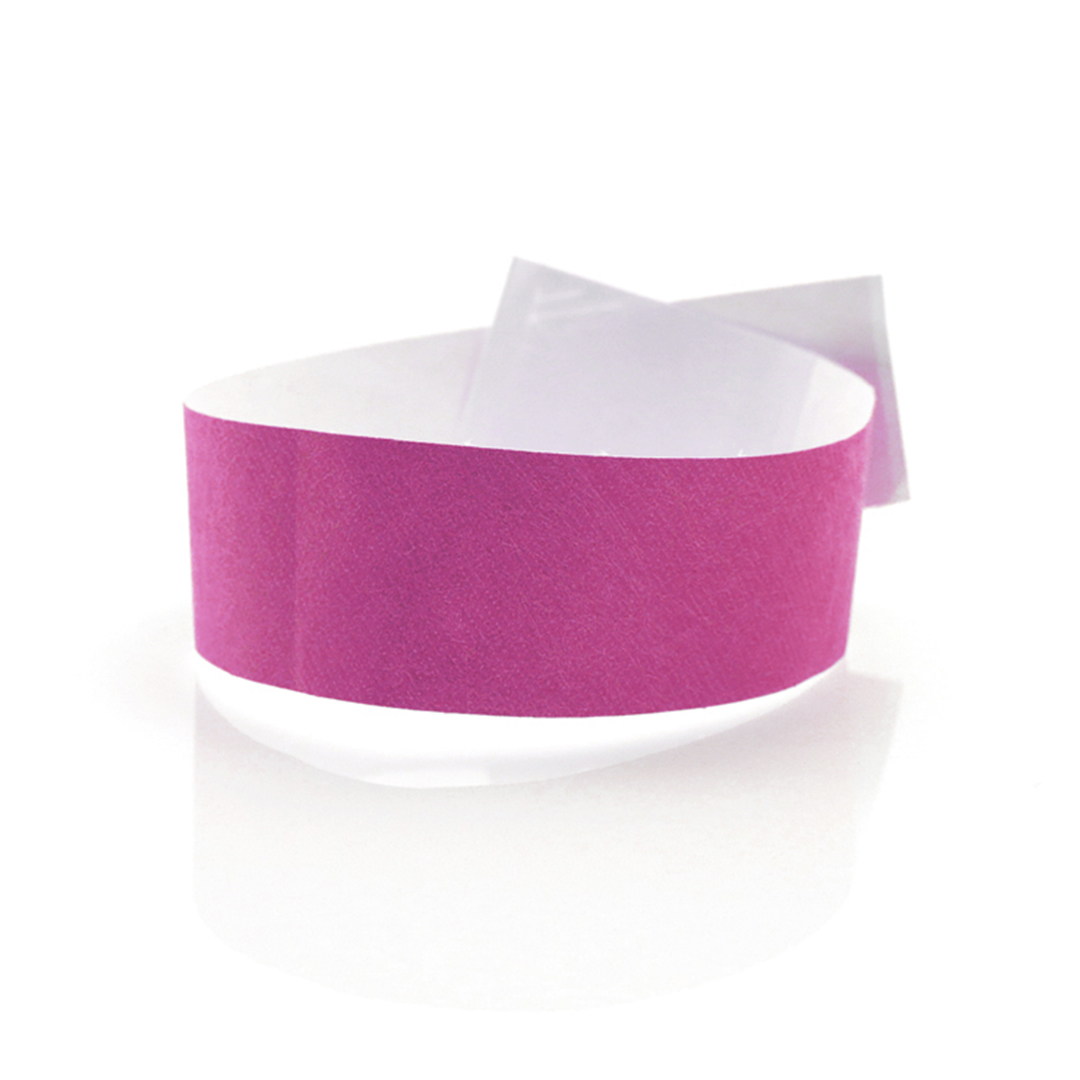 Pulsera de papel económica para invitados fabricada en fibra sintética, disponible en una amplia gama de colores.