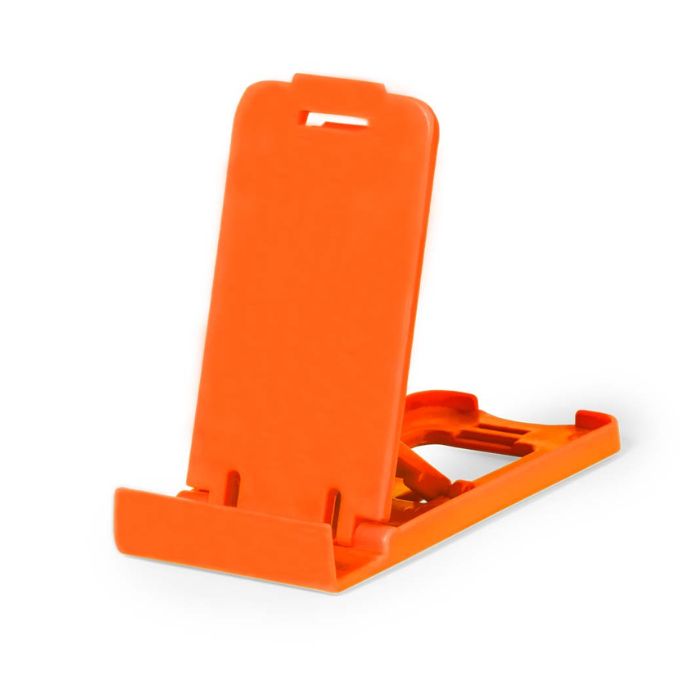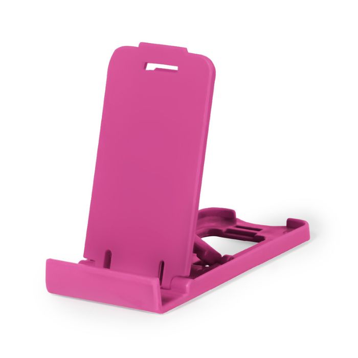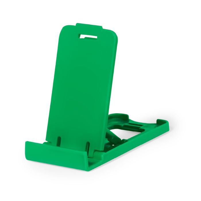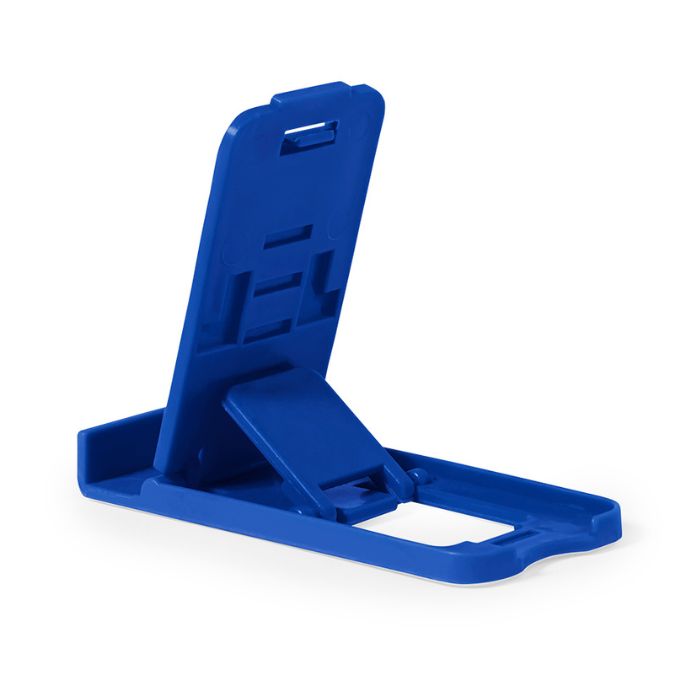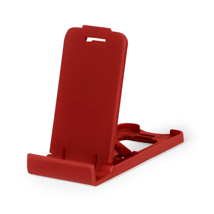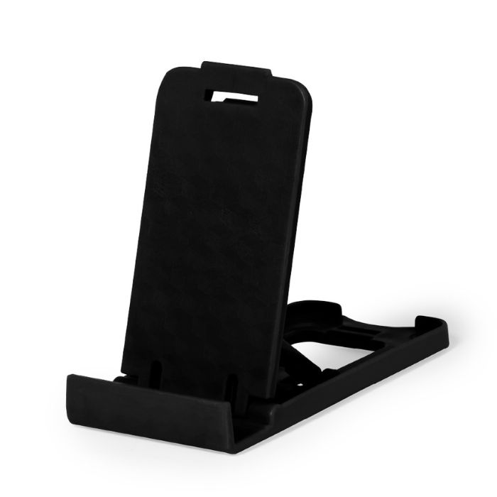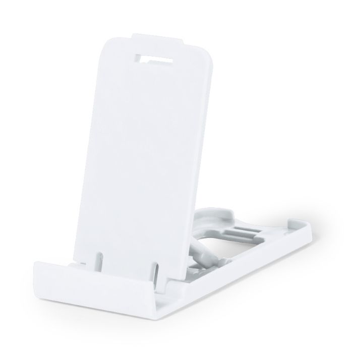 Soporte para smartphone y tablet fabricado en resistente PP. De diseño compacto y plegable para poder llevarlo a cualquier lado. Con distintas posiciones de inclinación. Disponible en amplia gama de colores. Presentado en bolsa individual reciclada.