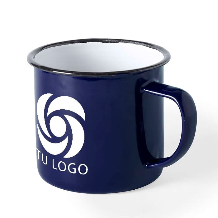 Taza metálica de 380ml de capacidad con diseño vintage y acabado con imperfecciones para mayor sensación retro. En combinación de exterior en variada gama de colores e interior en color blanco con borde negro. Presentada en caja individual.