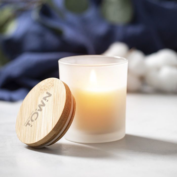 El tarro está fabricado en cristal, con una tapa de bambú que podrás personalizar con el nombre de tu empresa o con un mensaje especial que quieras transmitir a tus clientes.