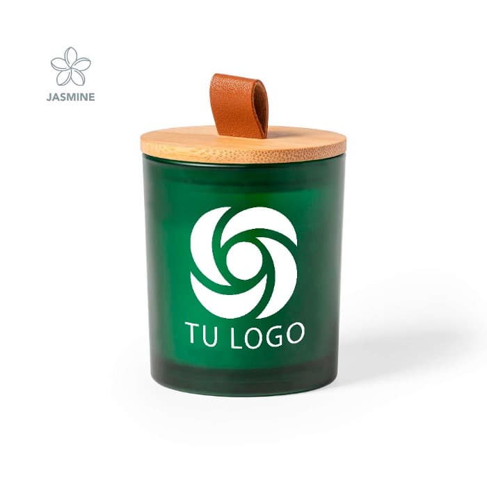Vela aromática en tarrito de cristal translúcido, en diferentes colores, con un olor concreto para cada color. La tapa de bambú tiene un agarre como de cuero, para levantar la tapa de una forma más cómoda.
